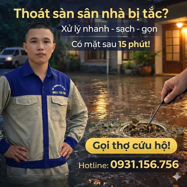 - Nước thải trào lên sàn nhà tắm — khẩn cấp, hút ngay